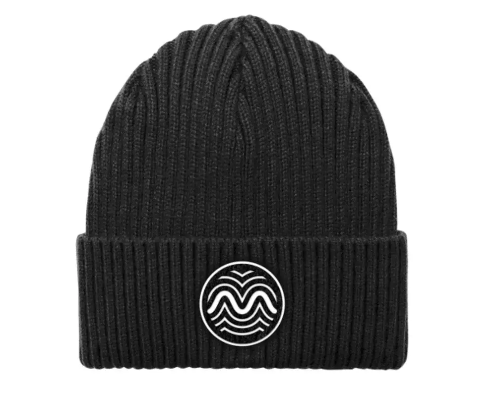Waveprint Patched Ribbed Beanie – Black in Chelsea